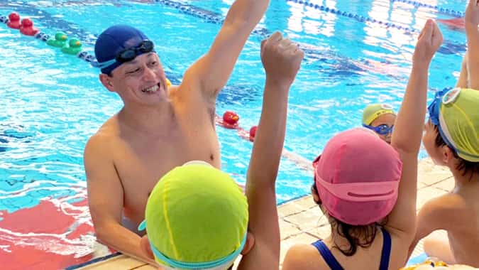エントランスからロッカー、シャワー、プールまで、スタッフやコーチがいつもお子さまの側で補助や指導をしていますので、親御さまに安心していただいています。